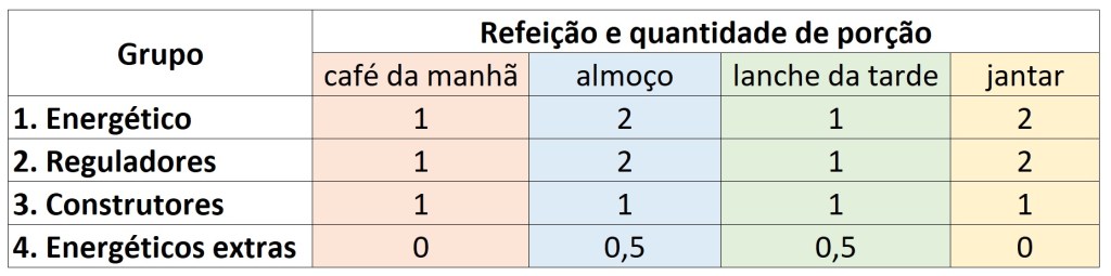 Já o terceiro grupo são os construtores, proteínas responsáveis pela composição dos tecidos do organismo. Consumir 3 porções de lácteos, 1 porção carne e ovos, e 1 porção de feijão e oleaginosas.