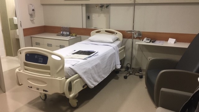 Passei por cirurgia robótica no AC Camargo. Internei-me no domingo à noite e a cirurgia estava marcada para às 9h de segunda-feira. Estava convicta que daria tudo certo. Às 7h da manhã fui informada pela equipe de enfermagem que a cirurgia ocorreria somente às 13h. Eu estava desde a noite anterior em jejum absoluto e por volta das 12h, pediram-me para guardar meus pertences no cofre e vestir somente o avental.